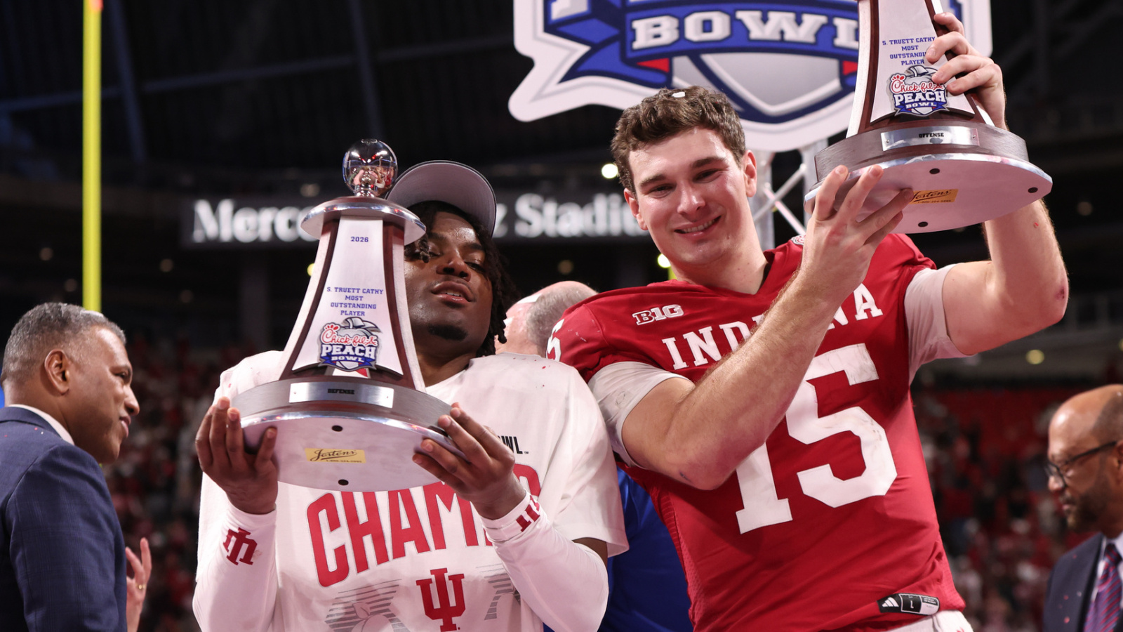 Indiana fans flooded Mercedes-Benz Stadium and turned it into a home game, and then on the first play from scrimmage, D’Angelo Ponds picked off a Dante Moore pass and returned it 25 yards for a touchdown.
