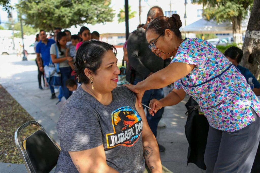 A woman receiving the measles vaccine in Mexico