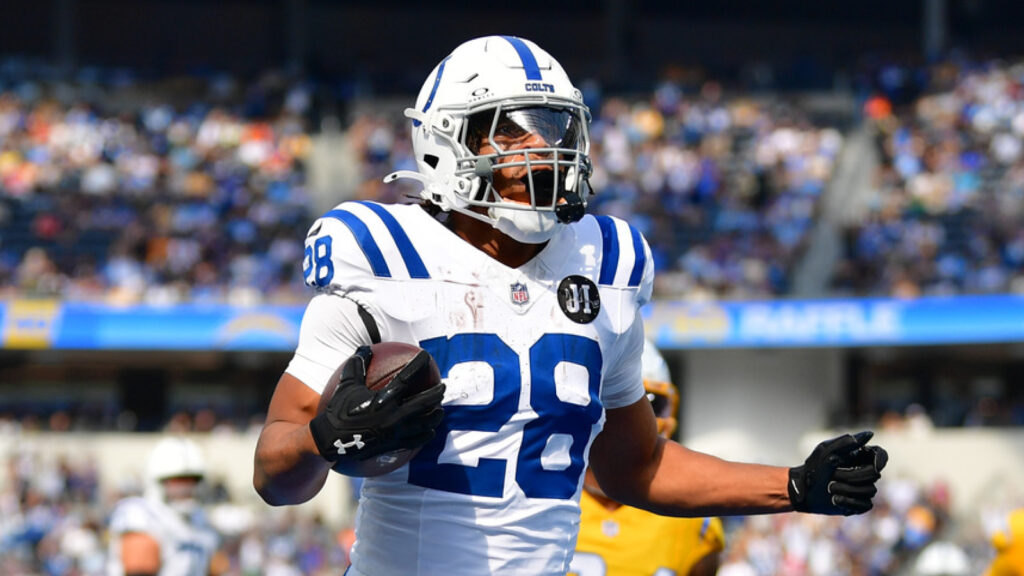 Quarterback Daniel Jones is experiencing a career renaissance after being cast off from the New York Giants last season, but Taylor is running like the best back in football. Through seven games, the 26 year old veteran is leading the NFL in both rushing yards (697) and touchdowns (10), while his 5.3 yards-per-carry are tied for third amongst players with at least 80 carries this season.