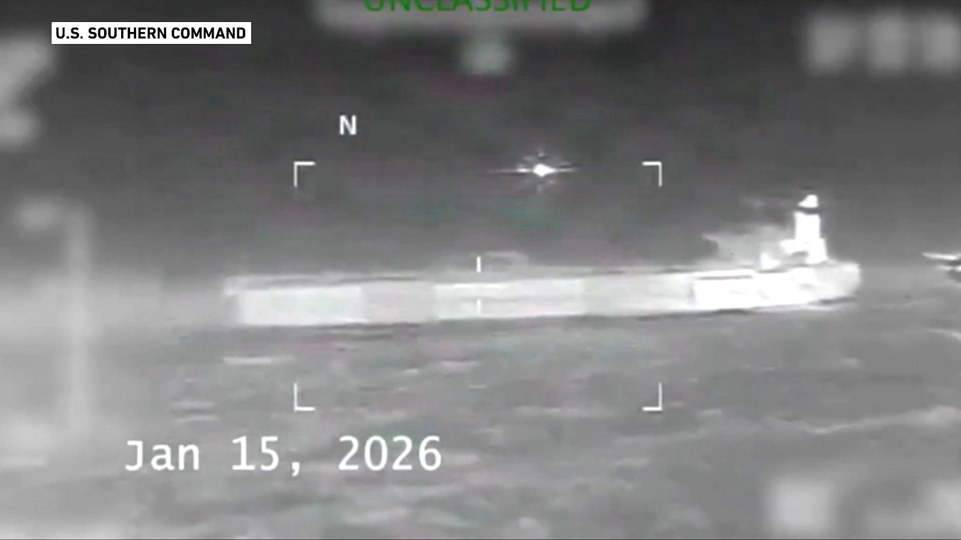 US Marines and sailors stationed on board the aircraft carrier USS Gerald R Ford took part in the operation alongside a coastguard tactical team, which Noem said conducted the boarding.